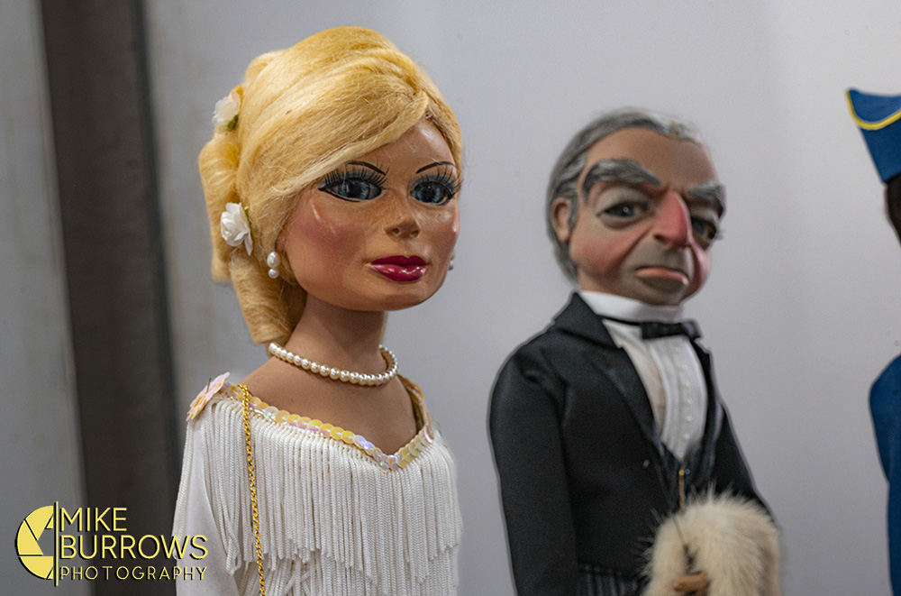 Replica puppet figures of Fireball XL5 pilot, Steve Zodiac, with Dr Venus, and Robert the Robot. Displayed by Carl Stirling Stewart.