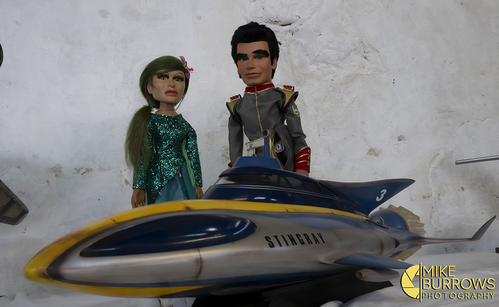 Replica Captain Blue and Captain Scarlet displayed by Carl Stirling-Stewart.